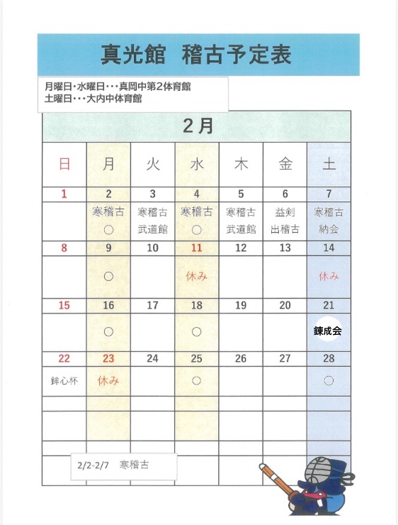 | 2月 | 岩瀬杯、鉾心杯争奪少年剣道錬成大会 |