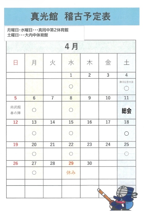 | 5月 | 東日本少年剣道交流錬成会(3日間) |